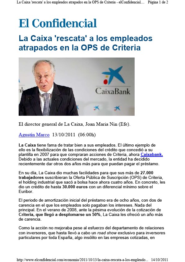 “Pero los más de 300.000 particulares que fueron a la OPS de Criteria no han tenido tanta suerte como los empleados del grupo financiero